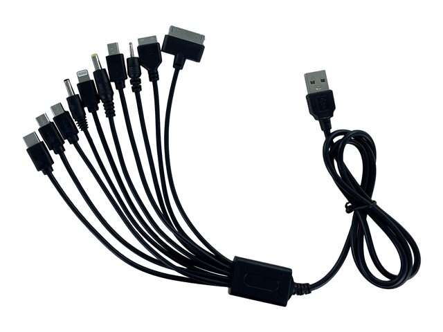 USB (alimentation uniquement) mâle pour mini USB type B, Micro-USB Type B, Apple Lightning (alimentation uniquement), 10 broches USB-C - 1 m - noir