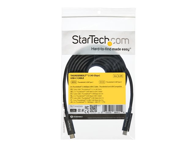 40 Gbps (TBLT3MM2MA) - Câble Thunderbolt - 24 pin USB-C (M) pour 24 pin USB-C (M) - Thunderbolt 3 / USB / DisplayPort - 2 m - support 4K - noir - pour P/N: CDP2HDUACP, CDP2HDUACPW, TB33A1C, TBDOCKHDPBC