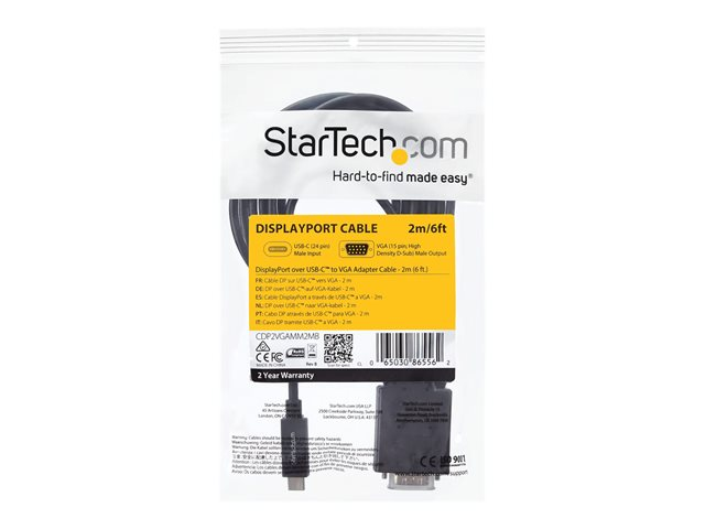 2m USB-C Video Cable (CDP2VGAMM2MB) - Câble vidéo / USB - 24 pin USB-C (M) pour HD-15 (VGA) (M) - 2 m - support 1920 x 1200 (WUXGA) - noir - pour P/N: TB4CDOCK