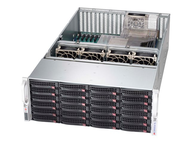 Description du produit Supermicro SC846 XE1C-R1K23B - rack-montable - 4U - ATX étendu Type de Produit Armoire système Format Rack-montable - 4U Couleur Noir Appareils intégrés Panneau de voyants Cartes mères prises en charge ATX, Extended ATX Baies de stockage pour serveur SATA/SAS - hot-swap Fonctionnalités du boîtier système Détection d'intrusion du châssis, assistance pour SCSI Enclosure Services (SES2), débit d'air réglable Périphérique d'alimentation Alimentation électrique 1200 Watt Alimentation redondante Oui Tension requise CA 120/230 V (50/60 Hz) Dimensions (LxPxH) 43.7 cm x 73.6 cm x 17.8 cm Poids 34.02 kg Garantie du fabricant Garantie de 3 ans -