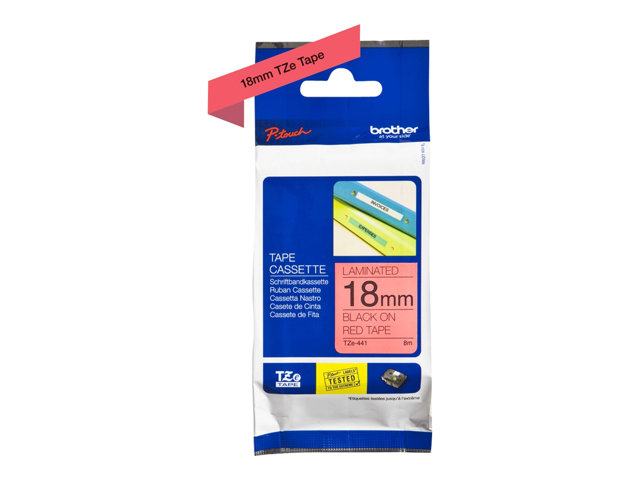 Noir sur rouge - rouleau (1,8 cm x 8 m) 1 rouleau(x) - pour P-Touch PT-18, 3600, D400, D600, E500, H101, H300, H500, P700, P750; P-Touch EDGE PT-P750