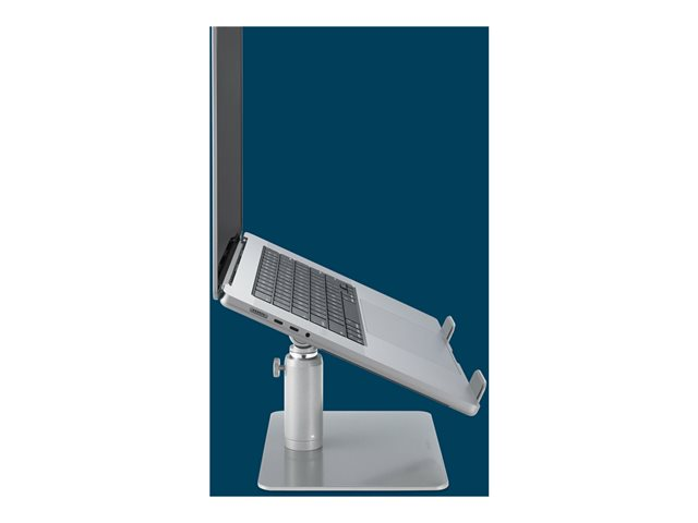 Le rehausseur universel pour ordinateur portable vous permet de surélever votre ordinateur portable à une hauteur de vision optimale, tout en réduisant l'encombrement sur le bureau. Fabriqué en aluminium et en acier résistant, ce rehausseur robuste pour ordinateur portable accepte tout ordinateur portable dont l'écran mesure jusqu'à 16'' et pesant jusqu'à 8 kg. Grâce au design à réglage progressif, vous n'avez pas besoin d'outil pour régler la hauteur entre 151 et 200 mm et l'angle d'inclinaison entre 0 et 45°. La conception ouverte du rehausseur améliore la circulation de l'air et le refroidissement de l'appareil, tandis que le vaste espace en dessous vous permet de ranger des accessoires. Les coussinets antidérapants en silicone protègent l'appareil des rayures et le maintiennent en place.
