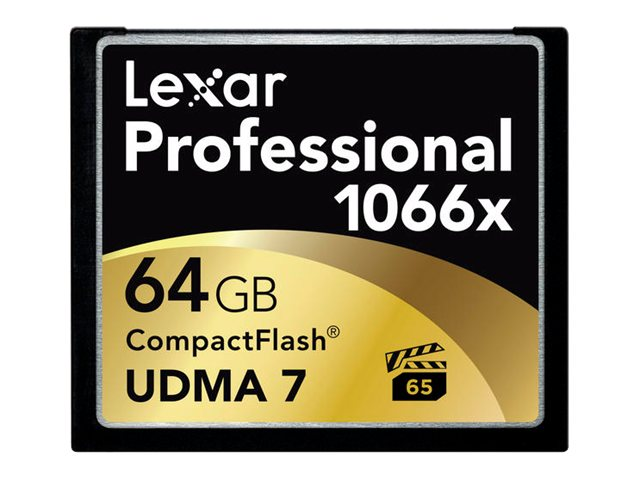 Description du produit Lexar Professional - carte mémoire flash - 64 Go - CompactFlash Type du Produit Carte mémoire flash Format Carte CompactFlash Capacité de stockage 64 Go Indice de vitesse 1066x Garantie du fabricant Garantie limitée à vie (Allemagne - 10 ans) -