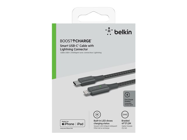Câble Lightning - 24 pin USB-C mâle pour Lightning mâle - 1.2 m - gris - Prise en charge de Power Delivery