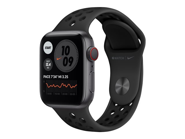 40 mm - espace gris en aluminium - montre intelligente avec bracelet sport Nike - fluoroélastomère - anthracite/noir - taille du bracelet : S/M/L - 32 Go - Wi-Fi, Bluetooth - 4G - 30.5 g