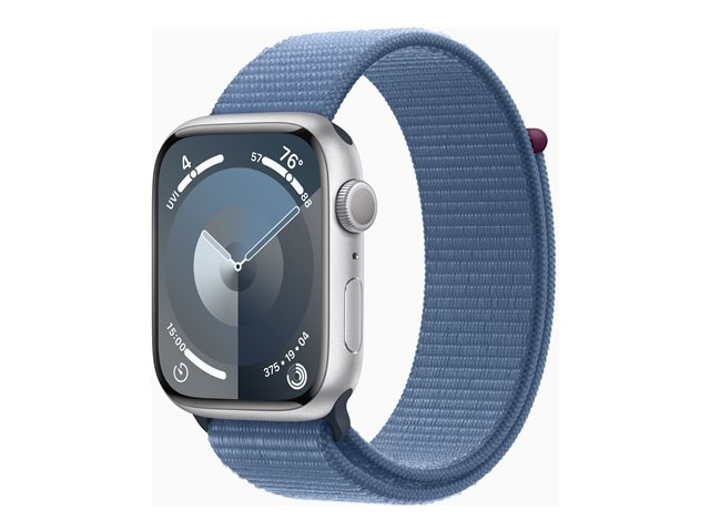45 mm - aluminium argenté - montre intelligente avec boucle sport - deux couches de matières textiles tissées - bleu hiver - 64 Go - Wi-Fi, UWB, Bluetooth - 38.7 g
