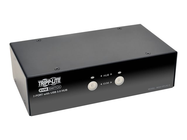 Description du produit Tripp Lite 2-Port DisplayPort KVM Switch w/Audio, Cables and USB 3.0 SuperSpeed Hub - commutateur écran-clavier-souris/audio/USB - 2 ports Type de périphérique Commutateur écran-clavier-souris/audio/USB - 2 ports Sous-type KVM Ports 2 x KVM / audio / USB Nombre d'utilisateurs KVM 1 utilisateur local Alimentation CA 120/230 V (50/60 Hz) Garantie du fabricant Garantie de 3 ans -