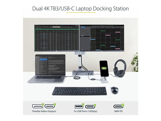 | Interfaces | 1 x USB-C 3.2 de 2e génération/Thunderbolt 3 avec alimentation électrique de 100 W (96 W soutenu) - 24 pin USB-C 2 x affichage / vidéo - DisplayPort - DisplayPort 20 broches 2 x affichage / vidéo - HDMI - HDMI de 19 broches de type A 1 x audio - casque/microphone - mini-phone stereo 3.5 mm 1 x réseau - 10Base-T/100Base-TX/1000Base-T - RJ-45 1 x USB 3.2 Gen 2 avec charge rapide - USB 9 broches type A 2 x USB 3.2 Gen 1 - USB 9 broches type A 1 x USB-C 3.2 de 2e génération avec chargement rapide - 24 pin USB-C 1 x USB-C 3.2 Gen 2 - 24 pin USB-C |