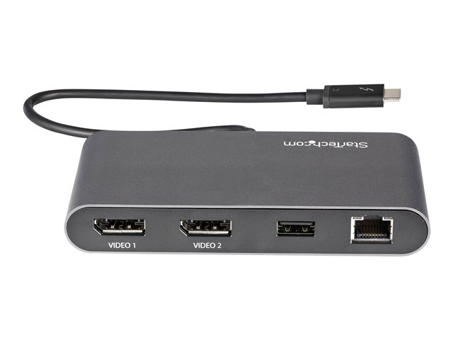 Cette station d'accueil Thunderbolt 3 certifiée est une mini station d'accueil compacte qui offre des connexions indispensables en termes de productivité. La station d'accueil alimentée par bus connecte deux écrans DisplayPort 4K, un port Gigabit Ethernet et un port USB-A (USB 3.2). Pour une configuration flexible, le câble Thunderbolt 3 rallongé inclus dispose d'une longueur de 28 cm.