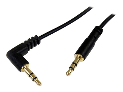 StarTech.com Câble audio slim Mini-Jack 3,5 mm vers Mini-Jack 3,5 mm coudé à angle droit de 1,8 m - M/M - Câble audio - mini-phone stereo 3.5 mm mâle pour mini-phone stereo 3.5 mm mâle - 1.8 m - noir - connecteur à angle droit - pour P/N: SV231DVGAU2A, SV431DVGAU2A MU6MMSRA