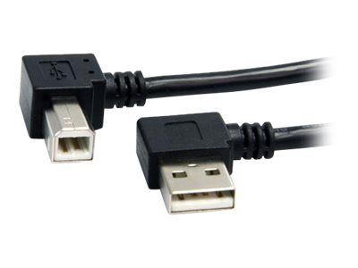 Le câble USB A vers B USB2HAB2RA3 91 cm est équipé d'un connecteur mâle USB A à angle droit et d'un connecteur mâle USB B à angle droit permettant des connexions de qualité supérieure vers des périphériques USB 2.0, comme des imprimantes, des scanners ou des disques durs USB externes, même dans les espaces réduits et difficiles d'accès.