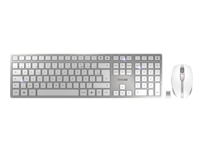 CHERRY DW 9100 SLIM - Ensemble clavier et souris - sans fil - 2.4 GHz, Bluetooth 4.2 - AZERTY - Français - blanc, argent