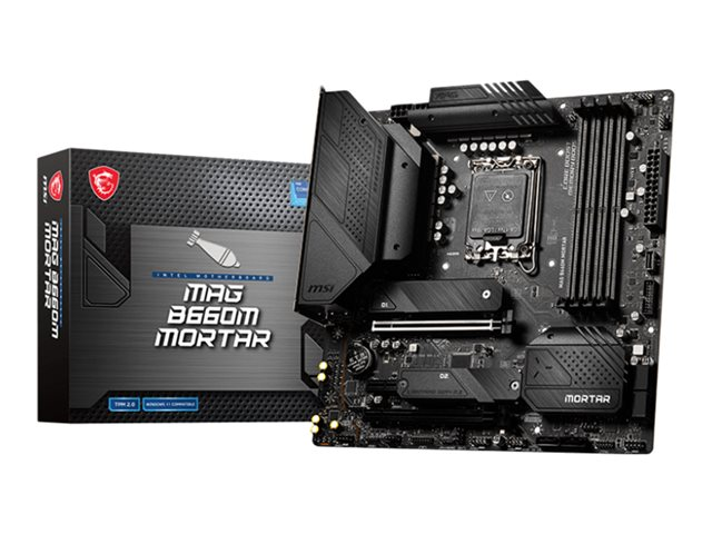 MSI MAG B660M MORTAR - Carte-mère - micro ATX - Socket LGA1700 - B660 Chipset - USB-C Gen2, USB 3.2 Gen 1, USB 3.2 Gen 2, USB-C Gen 2x2 - 2.5 Gigabit LAN - carte graphique embarquée (unité centrale requise) - audio HD (8 canaux)