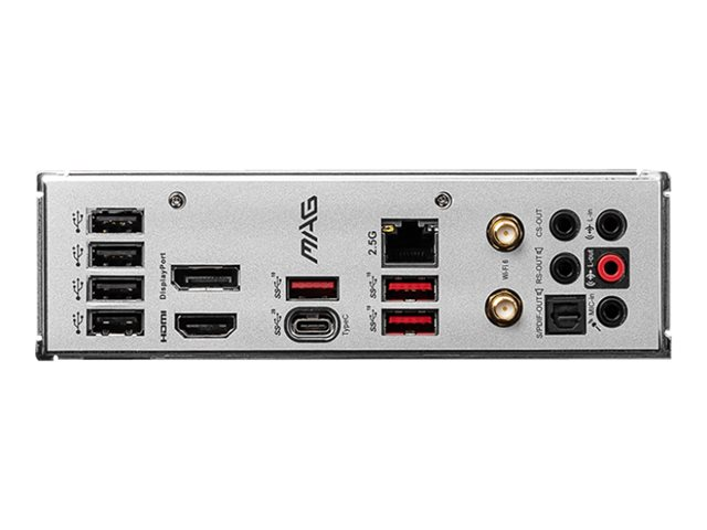 | Interfaces | 1 x HDMI 1 x DisplayPort 3 x USB 3.2 Gen 2 1 x USB-C Gen2x2 4 x USB 2.0 1 x sortie de ligne audio - mini-jack 1 x microphone - mini-jack 1 x entrée de ligne audio - mini-jack 1 x sortie de ligne audio (centre/caisson de basses) - mini-jack 1 x sortie de ligne audio (arrière) - mini-jack 1 x TOSLINK 1 x LAN (2.5Gigabit Ethernet) |