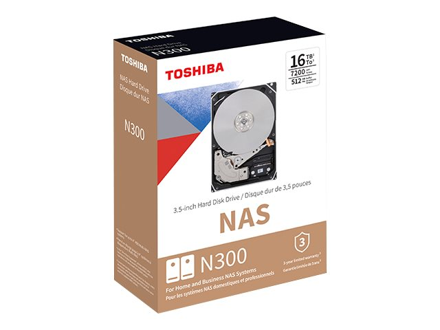 Toshiba N300 NAS - Disque dur - 16 To - interne - 3.5" - SATA 6Gb/s - 7200 tours/min - mémoire tampon : 512 Mo