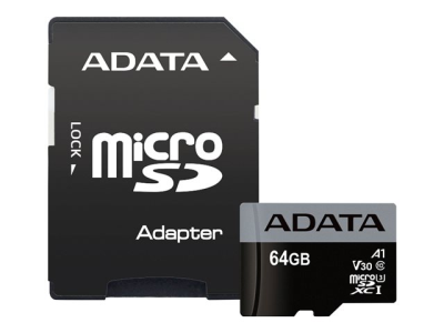 ADATA Premier Pro - Carte mémoire flash (adaptateur SD inclus(e)) - 64 Go - Video Class V30 / UHS-I U3 / Class10 - SDXC UHS-I AUSDX64GUI3V30SA1-RA1