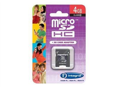 Integral - Carte mémoire flash (adaptateur microSDHC - SD inclus(e)) - 4 Go - Class 4 - micro SDHC