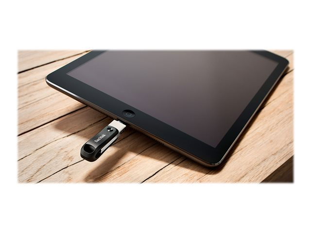 Besoin de plus d'espace sur votre iPhone? Le lecteur iXpand Flash Drive Go est une solution simple d'utilisation qui vous permet de libérer de la mémoire. Conservez vos souvenirs en branchant simplement le lecteur afin de sauvegarder automatiquement vos photos, vidéos et contacts. Une fois que vos fichiers se trouvent sur le lecteur iXpand, vous pouvez utiliser la connexion haute vitesse USB 3.0 pour les transférer rapidement sur votre ordinateur. Il est également possible de protéger vos données par mot de passe sur plusieurs types d'appareils pour éviter tout accès non désiré. De plus, le système pivotant à double usage protège les connecteurs et comprend une attache pour porte-clés pour l'emporter partout avec vous.