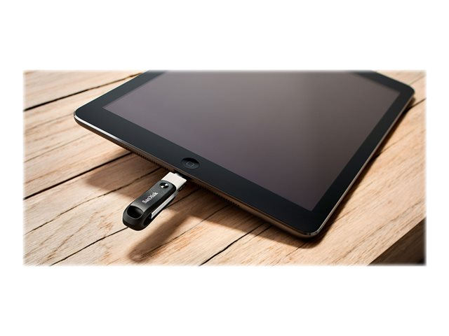 Besoin de plus d'espace sur votre iPhone? Le lecteur iXpand Flash Drive Go est une solution simple d'utilisation qui vous permet de libérer de la mémoire. Conservez vos souvenirs en branchant simplement le lecteur afin de sauvegarder automatiquement vos photos, vidéos et contacts. Une fois que vos fichiers se trouvent sur le lecteur iXpand, vous pouvez utiliser la connexion haute vitesse USB 3.0 pour les transférer rapidement sur votre ordinateur. Il est également possible de protéger vos données par mot de passe sur plusieurs types d'appareils pour éviter tout accès non désiré. De plus, le système pivotant à double usage protège les connecteurs et comprend une attache pour porte-clés pour l'emporter partout avec vous.