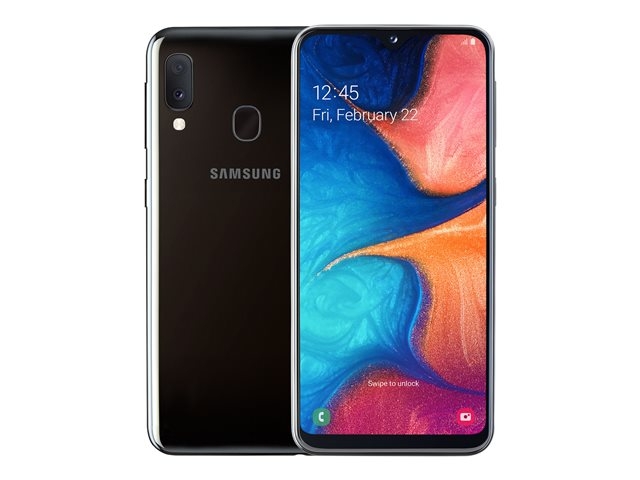 Samsung Galaxy A20e - 4G smartphone - double SIM - RAM 3 Go / Mémoire interne 32 Go - microSD slot - Écran LCD - 5.8" - 1560 x 720 pixels - 2x caméras arrière 13 MP, 5 MP - front camera 8 MP - noir SM-A202FZKDXEF