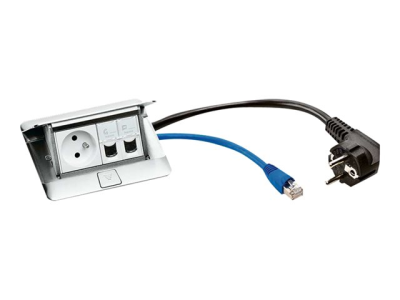 C2G Pop-Up - Coupe-circuit - CA 230 V - 3680 Watt - entrée : bipolaire - connecteurs de sortie : 1 (alimentation, 2 x RJ-45) - 2 m - France
