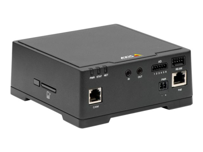 L'unité AXIS F41 dispose d'un emplacement pour carte SD grande taille, ce qui permet de stocker localement les vidéos. Il accepte l'audio bidirectionnel et dispose de quatre entrées/sorties configurables de dispositifs externes pour une gestion avancée des alarmes. Un port RS232 permet l'intégration de données externes à la vidéo. L'unité principale peut être alimentée en CC ou par Ethernet.