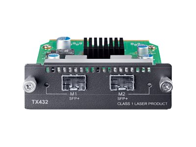 Le module TX432 est une interface fournissant 2 emplacements SFP+ 10 Gigabit. Elle est compatible avec les switches TP-LINK, les émetteurs-récepteurs et câbles SFP+.