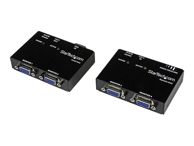 L'extendeur vidéo VGA sur Cat 5, référence ST121UTPEU, vous permet d'étendre votre signal vidéo VGA à au plus 150 mètres et de connecteur jusqu'à 4 écrans (2 localement et 2 à distance), à partir de cette source unique. Le ST121UTPEU est un kit complet incluant une unité locale de transmission et une unité réceptrice, offrant ainsi une solution complète dans les cas où des écrans distants sont requis. L'unité locale inclut une entrée VGA unique et deux sorties VGA, vous permettant de voir et de répartir votre signal VGA source entre deux écrans indépendants, de manière locale. Le signal vidéo VGA est ensuite envoyé via un câble UTP 4 paires de catégorie 5 ou supérieure, à une unité distante qui est également dotée de deux sorties VGA supplémentaires, vous offrant ainsi la liberté d'afficher votre source VGA sur au plus quatre moniteurs. Bénéficie de la garantie StarTech.com de 2-ans et de l'assistance technique gratuite à vie.