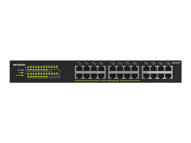 NETGEAR GS324P - Commutateur - non géré - 16 x 10/100/1000 (PoE+) + 8 x 10/100/1000 - de bureau, Montable sur rack - PoE+ (190 W)