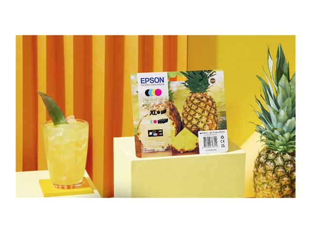 Les encres quatre couleurs séparées d'Epson sont fiables et parfaitement adaptées à l'impression quotidienne. Une cartouche abordable est disponible pour chaque type d'utilisateur dans des tailles standard et très haute capacité proposées sous forme séparée ou en tant que multipacks. Identifiez-la facilement en magasin en recherchant le visuel Ananas.